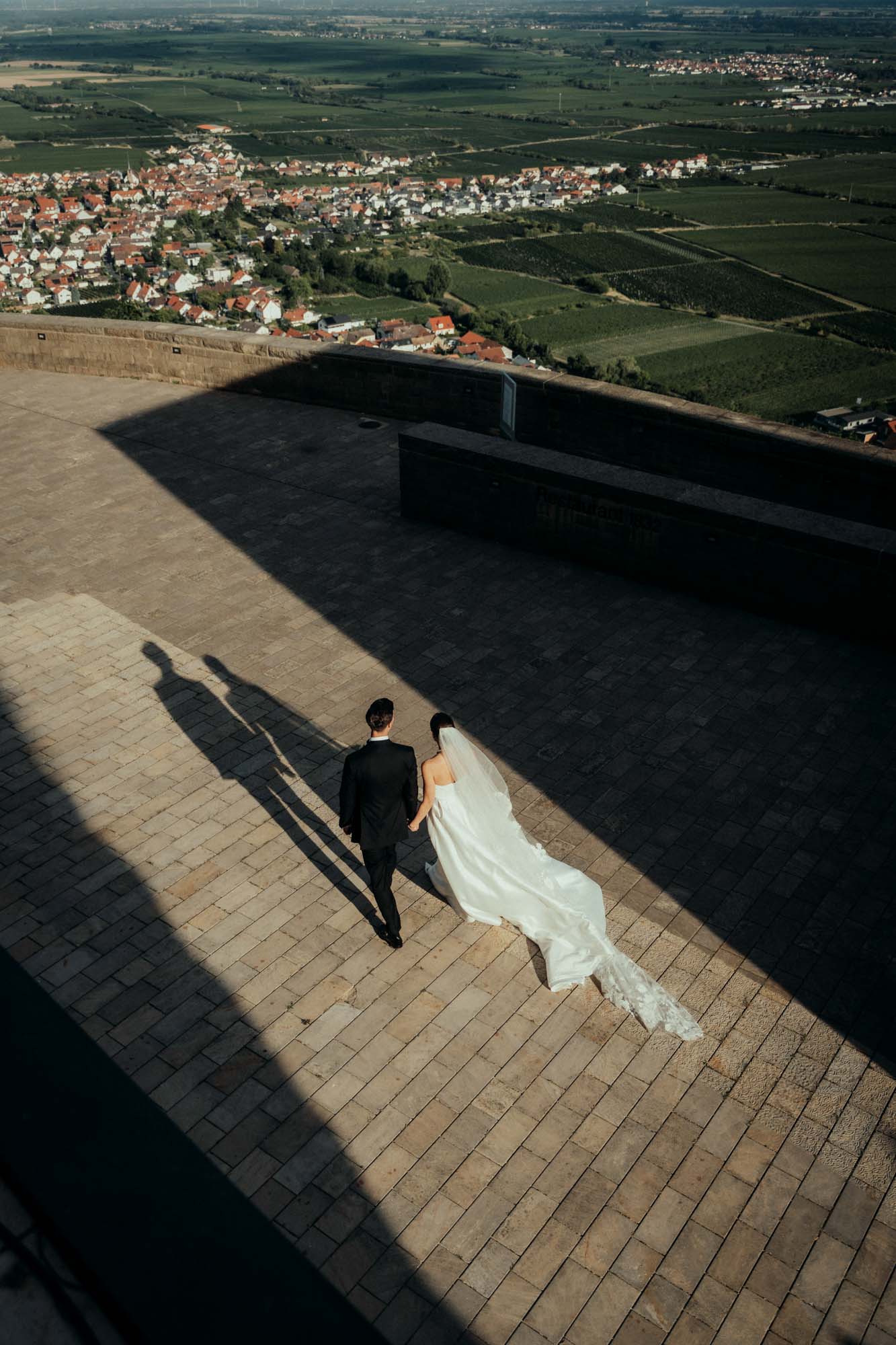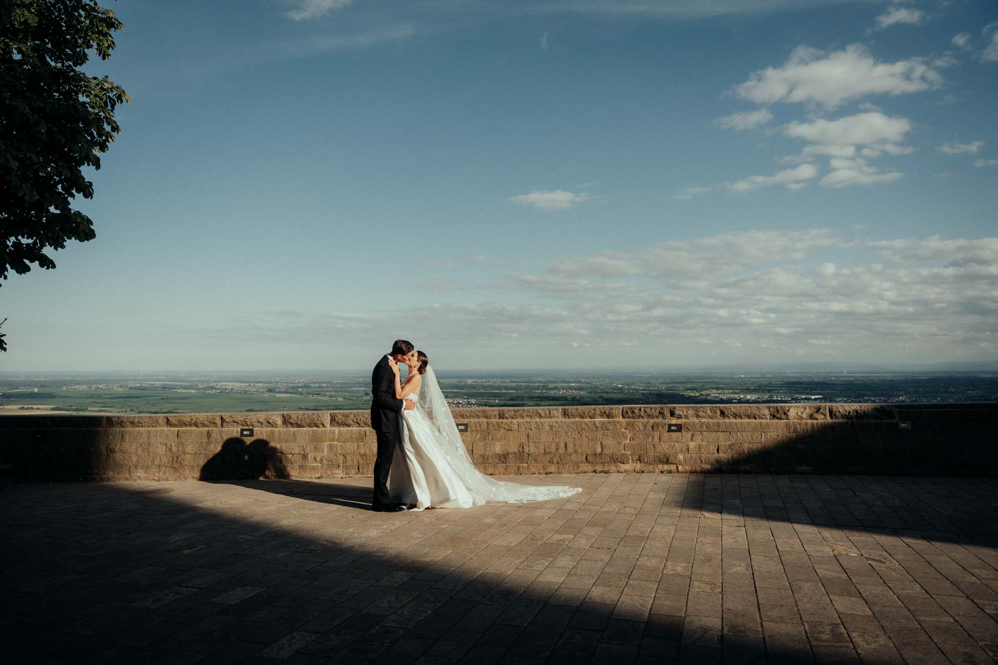 Als Hochzeitslocation in der Pfalz bietet das Hambacher Schloss eine einzigartige Kombination: historische Architektur, moderne Eventtechnik und eine Lage, die kaum zu übertreffen ist. Hoch über Neustadt gelegen, liegt das Schloss wie eine Bühne über der Pfalz. Schon die Anfahrt durch die Weinberge und der Aufstieg zur Terrasse sorgen für Gänsehaut - spätestens, wenn man den Ausblick sieht, weiß man: Das hier ist ein besonderer Ort.