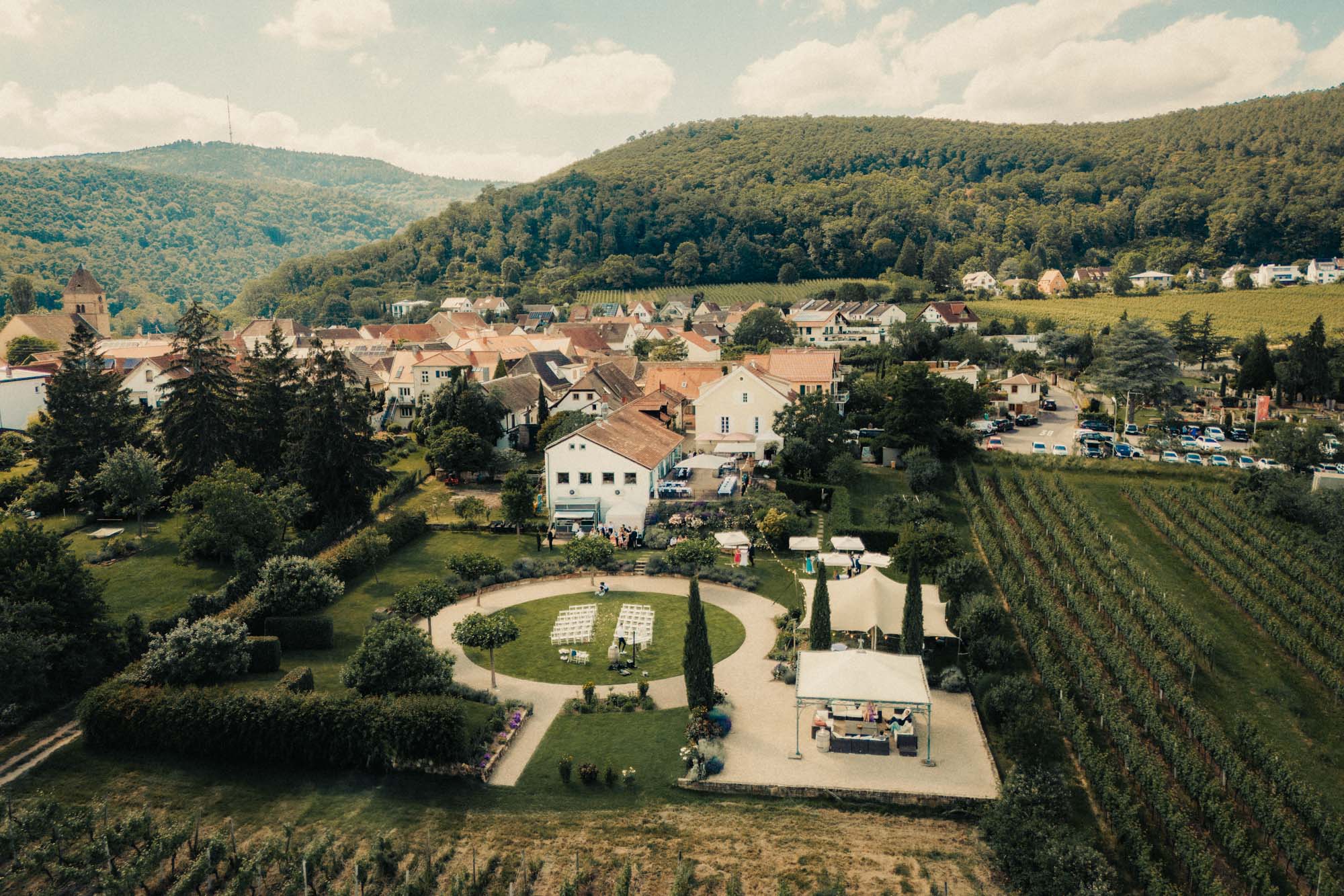 Der Ketschauer Hof in Deidesheim zählt zu den eleganten Hochzeitslocations an der Deutschen Weinstraße. Mit historischen Gemäuern, Weinbergsnähe und hochwertigem Service bietet er den perfekten Rahmen für stilvolle Feiern.
